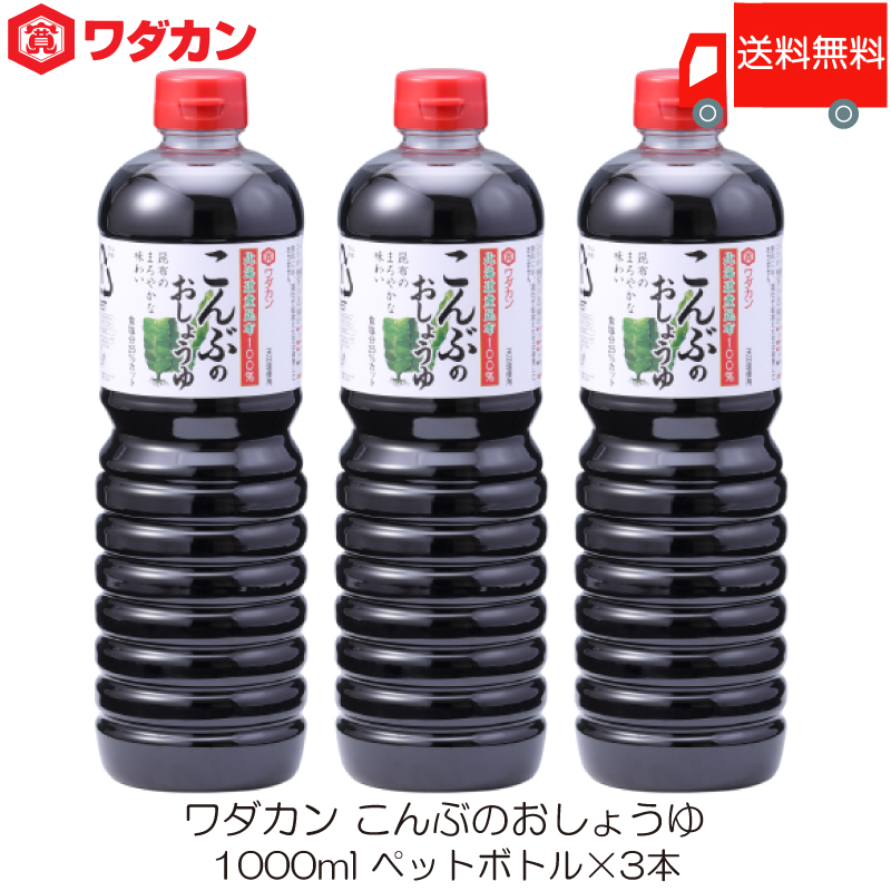 ワダカン しょうゆ こんぶのおしょうゆ 1000ml ×3本 ペットボトル 送料無料
