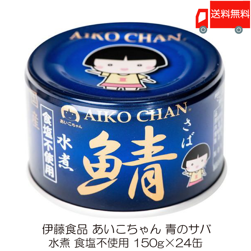 伊藤食品 鯖缶 あいこちゃん 青の鯖 水煮 食塩不使用 150g 24缶 (青のサバ水煮 食品不使用) 送料無料