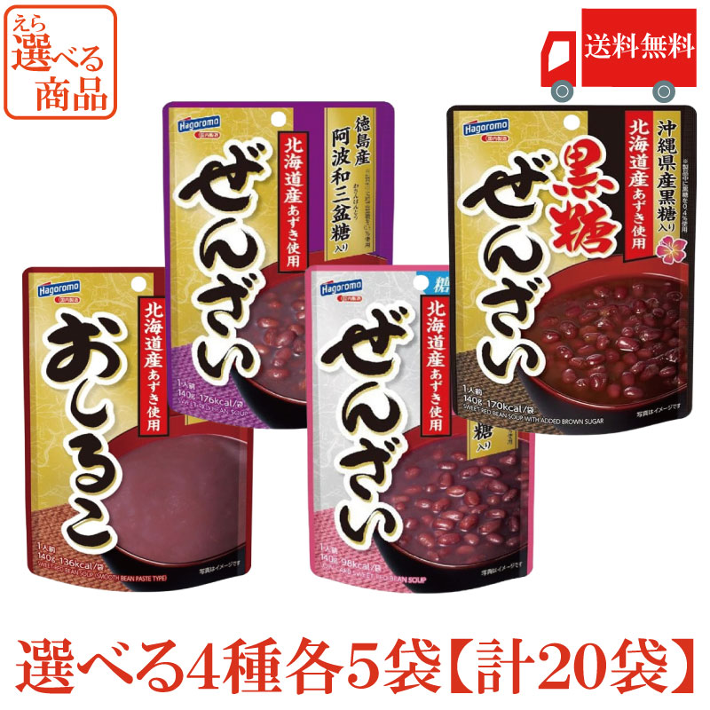 送料無料 4種から選べる はごろも おしるこ ぜんざい カロリーオフ 4種類 各5袋 計20袋