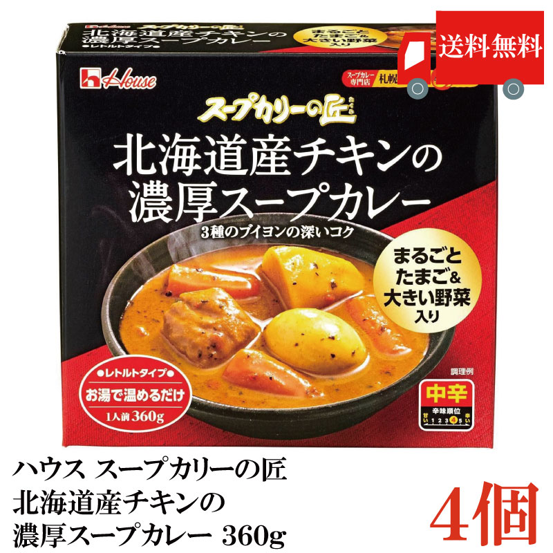 送料無料 ハウス スープカリーの匠 北海道産チキンの濃厚スープカレー 360g×4個