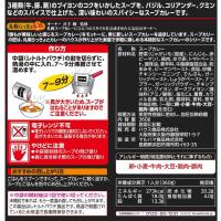 | 原材料名 | 野菜(じゃがいも(国産)、にんじん、赤ピーマン)、鶏肉、ゆで卵、トマトペースト、調味油、香辛料、牛脂豚脂混合油、粉末みそ、ピーマンペースト、食塩、砂糖、チキンシーズニング、でんぷん、ガーリックペースト、しょうがペースト、ナンプラー、ガーリックパウダー、チキンブイヨン、ブイヨン、ポークブイヨン/調味料(アミノ酸等)、塩化Ca、重曹、カラメル色素、乳化剤、酸味料、香料、香辛料抽出物、(一部に卵・小麦・牛肉・大豆・鶏肉・豚肉を含む) |