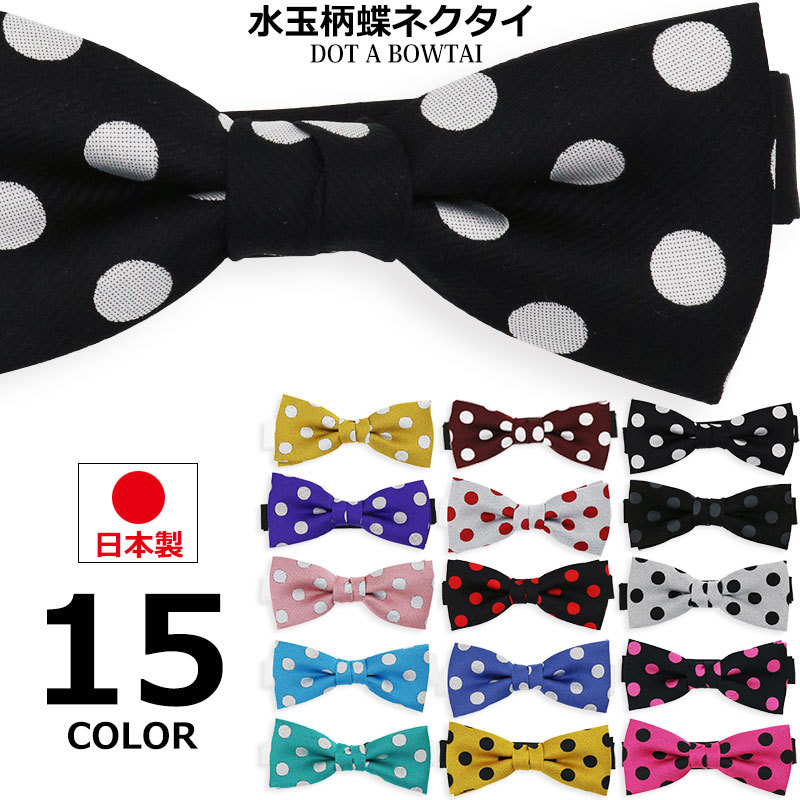 日本製 蝶ネクタイ 水玉柄 水玉模様 ドット柄 フック式 簡単装着 メンズ レディース 黒 赤 結婚式