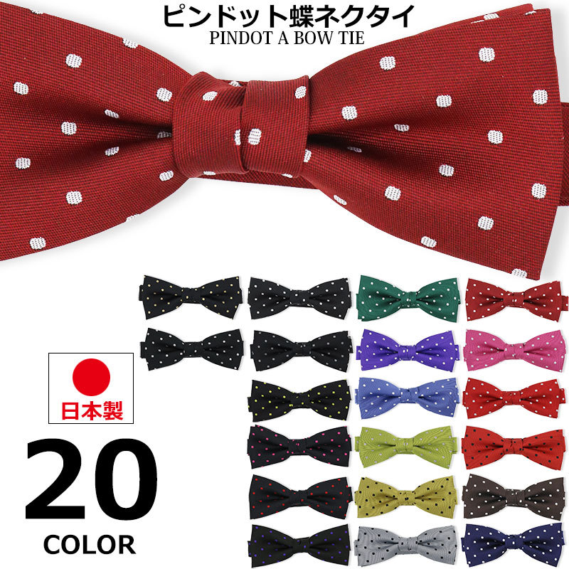 日本製 蝶ネクタイ 水玉柄 水玉模様 ピンドット 蝶タイ メンズ レディース ブラック レッド 黒 赤 結婚式