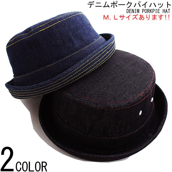 『ポークパイハット』『デニム』『丸い』『カンカン帽』『ハット』『HAT』『帽子』『ハット』『帽子』『日よけ』『ネイビー』『ブラック』『黒』