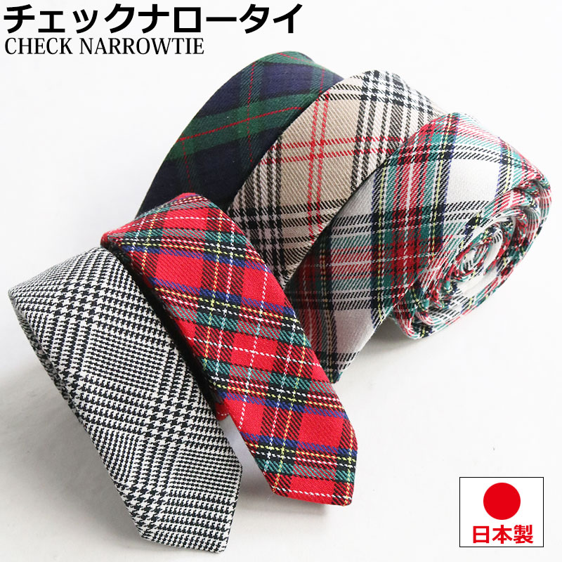 チェック柄 ネクタイ 日本製 3.5cm幅 細め ナロータイ タータンチェック 紳士 メンズ カジュアル ユニフォーム スリムタイ アメカジ