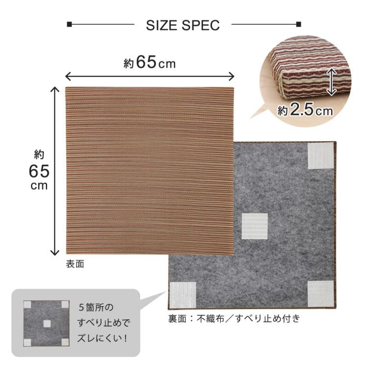 裏面:不織布(滑りにくい加工付 裏面5カ所)