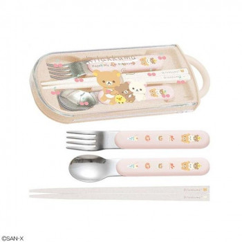 リラックマたちと楽しくランチタイム!スプーン&フォーク&はしのトリオセットです♪指で引き出すスライド式で、取り出しやすい。パーツが少なくて洗いやすいのがポイント。抗菌加工で使いやすい!スイーツとリラックマたちがかわいいデザイン。