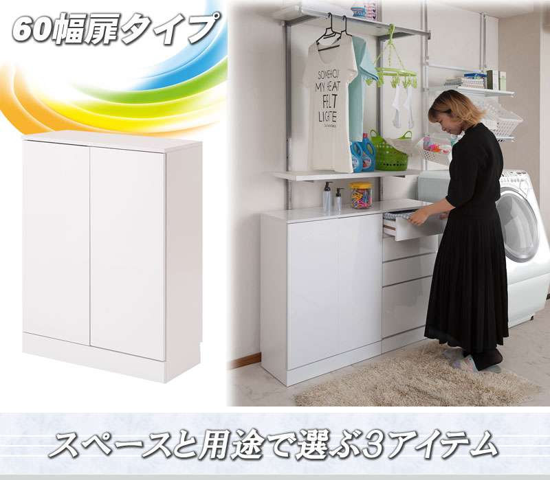 ランドリー収納 洗面所 収納棚 扉付き 収納 スリム ロータイプ 頑丈 棚 薄型 幅60 奥行30 白 ランドリーラック おしゃれ 扉 ランドリー キッチン
