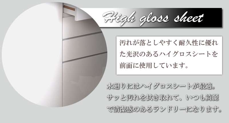 ■商品の仕様/前板・天板:ハイグロスシート、その他:プリント紙化粧繊維板