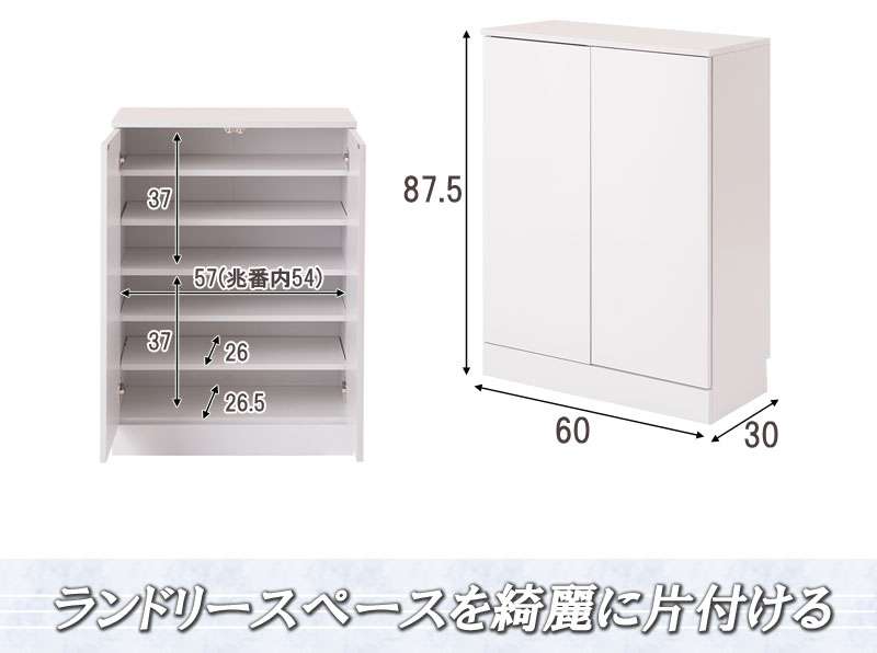 ■商品サイズ/本体:(約)幅60×奥行30×高さ87.5cm、扉内内寸:(約)幅57×奥行26.5(棚板奥行26)×高さ(固定棚上下各)37cm