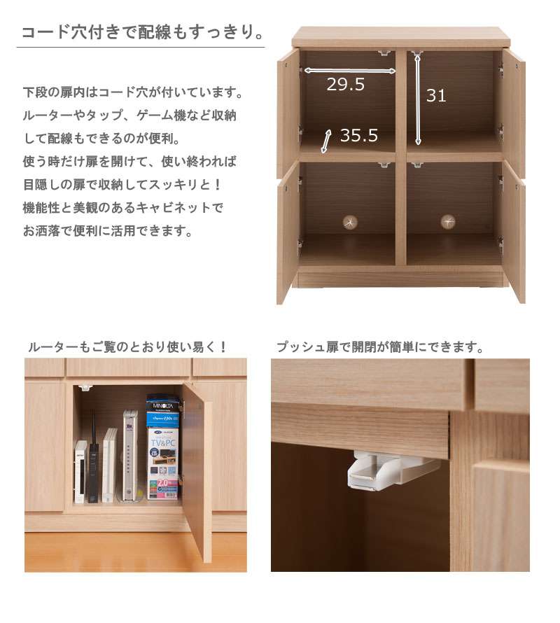 キャビネット サイドボード 完成品 日本製 幅70 収納 ナチュラル 電話代 北欧モダン 木製 リビング スリム 扉付き おしゃれ ロータイプ 北欧 2段