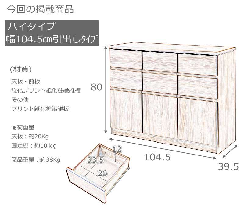 ■商品サイズ/本体:(約)幅104.5×奥行39.5×高さ80cm