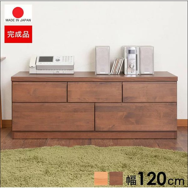 ローチェスト タンス 完成品 日本製 幅120 2段 チェスト 木製 大容量 洋服タンス おしゃれ アルダー材 ブラウン 幅120cm幅 収納 ワイド 和風