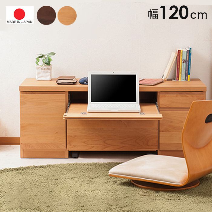 デスク 机 完成品 日本製 パソコン pc ローデスク パソコンデスク 収納 ロータイプ 引き出し 幅120 学習机 おしゃれ 子供 木製 ラック キャスター