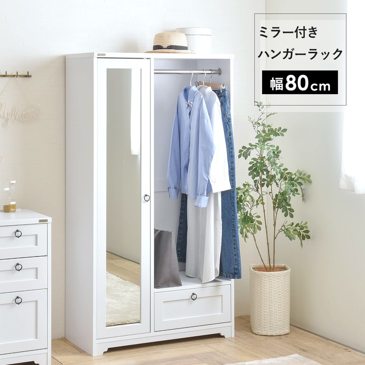 クローゼット ワードローブ 収納 ミラー付き 扉 鏡 大型 幅80 白 ハンガーラック 奥行40 木製 大容量 北欧 ホワイト 壁面収納 キャビネット ロッカー おしゃれ