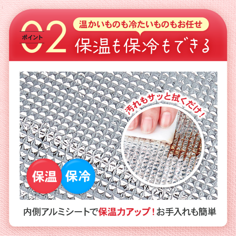 便利なフロントポケットと、内側には保冷剤ポケットが付いています。