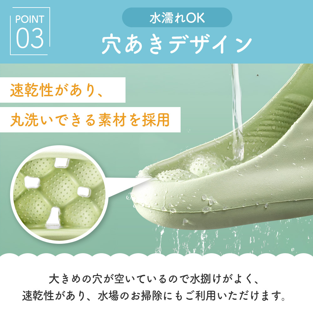 サンダルの底に大きめの穴が空いており、水場のお掃除やベランダでも大活躍