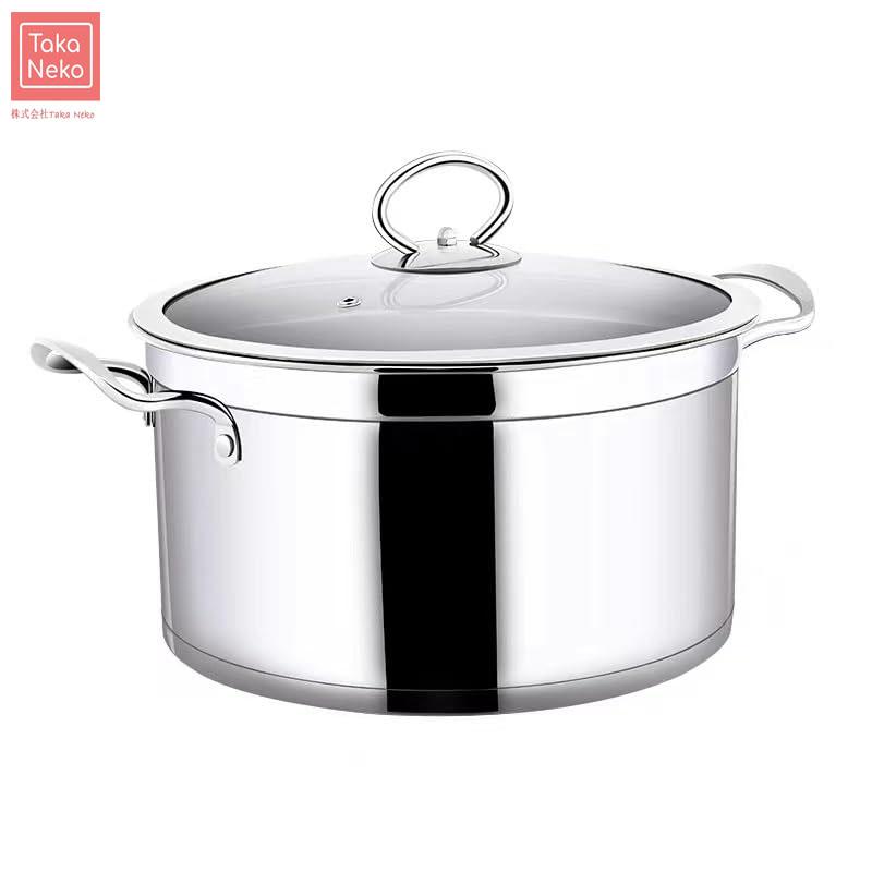 3層複合ポット底: 急速熱伝達、厚底、厚底、薄肉構造、均一な加熱、優れた熱伝達性能、底部の均一な熱分布で密封されています、燃料節約<br><br>? ガラスふたアドバンテージ: 調理プロセスを通して見えるように見えるシースルーガラスふた、食材の様子を見ながら調理できる耐 熱性に優れたガラスフタは、密閉性に 優れ、