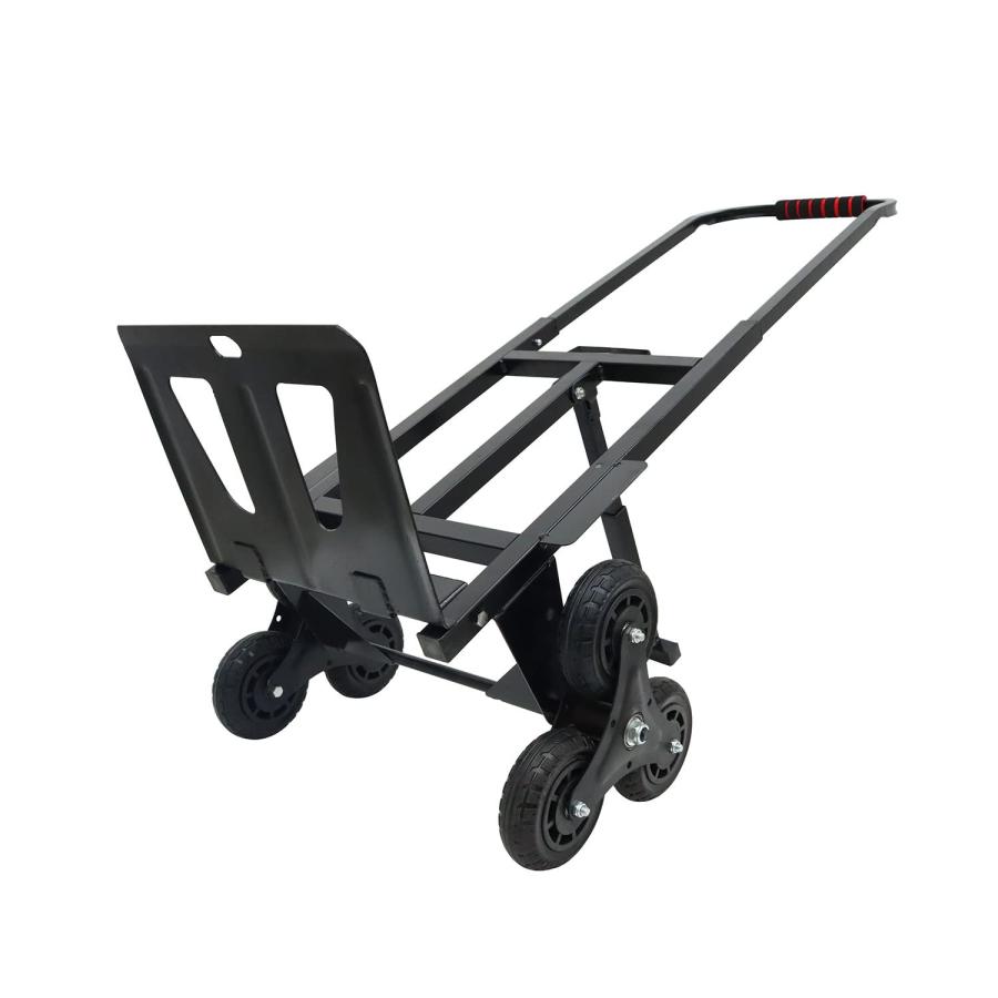 この三輪の階段登れる台車は折り畳み式です。使わないと、折り畳みして、携帯と収納は容易になります。<br><br>台車の本体の材質は厚さあるカボンスチール製とパレットは厚みある鋼板で、強力な支持力と耐久性に優れます。<br><br>特別なデザイン:厚みのある鋼板平底パレットにより、商品の収納が容易になります。荷重は約190KGで、日常の荷物の運搬とか、引越しとかなどは楽になります。<br><br>車輪は厚さ3.8cmのヘビーデューティーホイールを採用し、耐久性に優れています。車輪は静音です。ホイールフレームは、耐荷重性に優れた幅広の三脚を採用します。<br><br>この台車は階段の登るとか、下がるとか、平らな道で使うとか、流暢に使えます。引き込み式ハンドルで身長や場所に合わせた調整が可能です。
