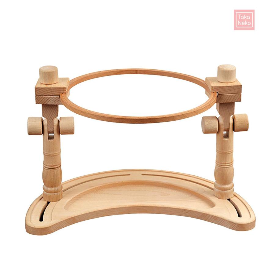 刺繍スタンド 刺繍枠 木製 フレーム調整可能 スタンド ウッドフープ 縫製 手作り 洋裁道具 針仕事 手芸用 縫製ツール 卓上 360度回転 調整可能 クロスステッチラ