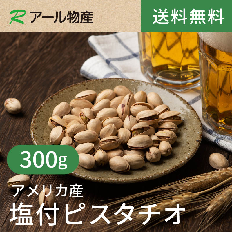 塩付ピスタチオ【添加物不使用】300g【送料無料】アメリカ産 ローストピスタチオ 絶妙塩加減 湿気対策チャック付き(アール物産)