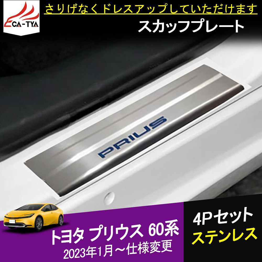 PR091 プリウス 60系 2023新型 サイドステップカバー スカッフプレート ステンレス アクセサリー カスタム パーツ キズ保護 4P