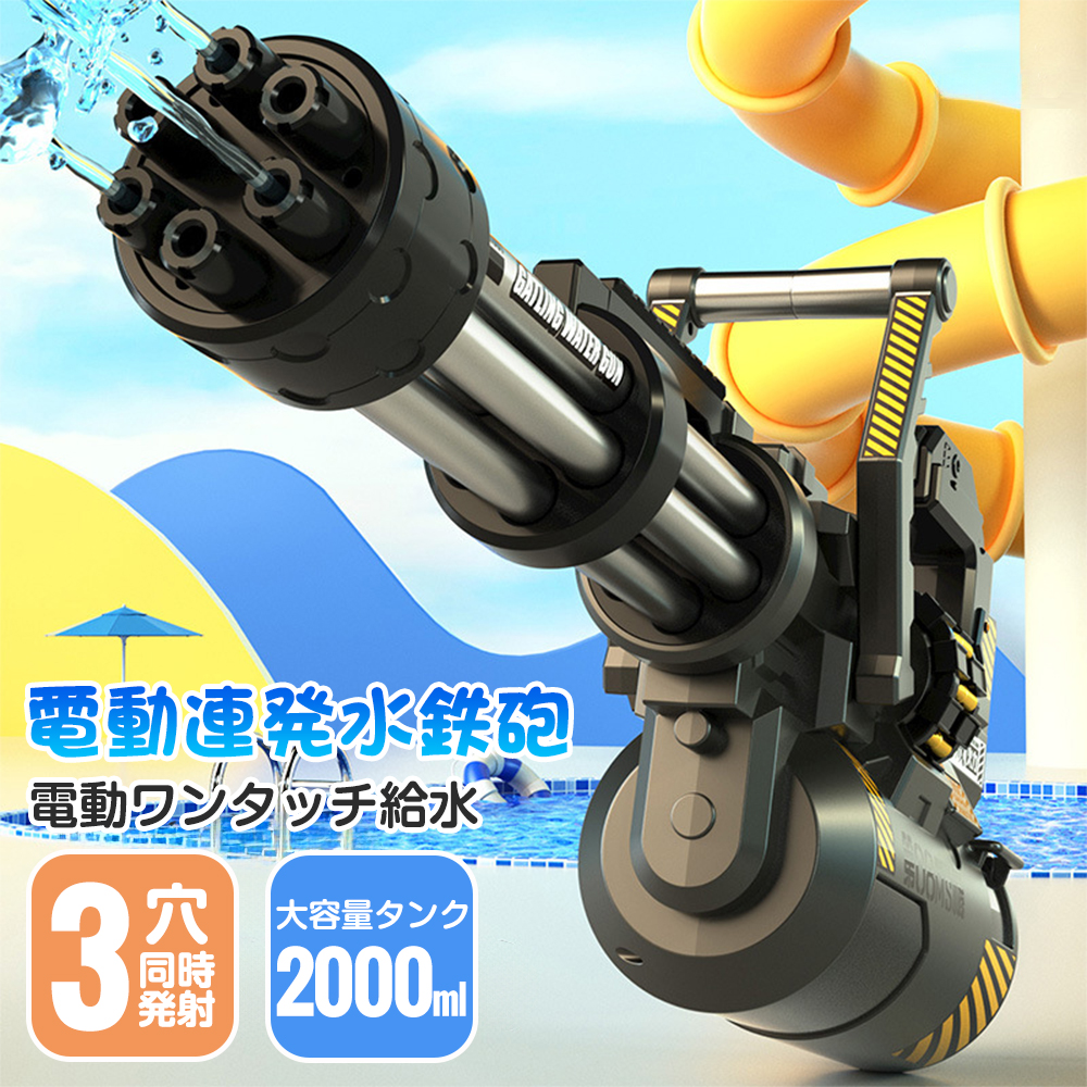 WJ030 電動ウォーターガン ガトリングスタイル 水鉄砲 電動 自動給水 超強力飛距離 電動水ピストル 高速連発 水自動吸い込み 約8〜10m 2000ML 大容量