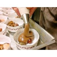 ベルギー産のこだわりチョコを使用! 体に優しいヘーゼルナッツを丸ごと1つ使用。 使用している材料はとてもシンプル。 ですが、厳選されたものを使ってます。 渋皮付きの栗ダイスカットとチョコレートの相性も最高。