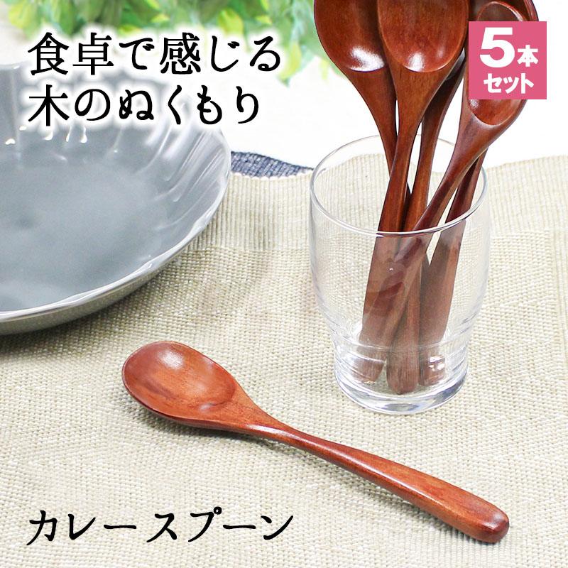 スプーン おしゃれ カトラリー 5本セット カトラリーセット 木 木製 カレースプーン 業務用 かわいい 大きめ 丼 18cm スープ お弁当用 漆
