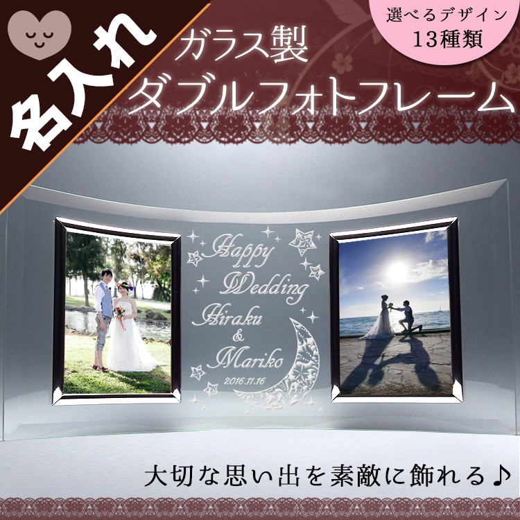 誕生日/還暦祝い/長寿祝いにおしゃれな名入れガラスダブルフォトフレーム/写真L版/です。