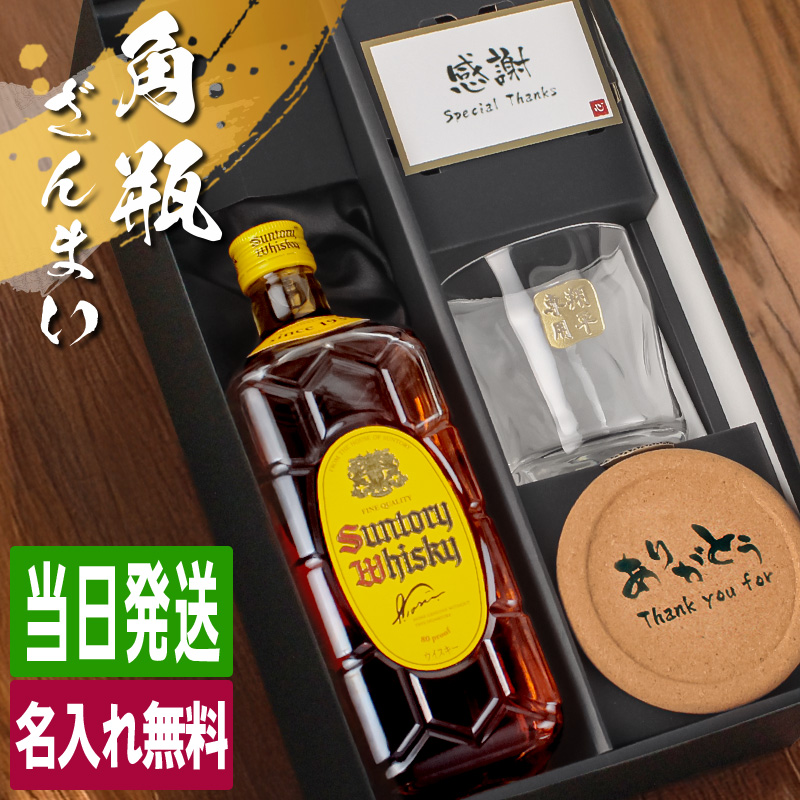 オリジナル彫刻を入れたグラスと サントリー 角瓶 をセットにしたお得なギフトセット