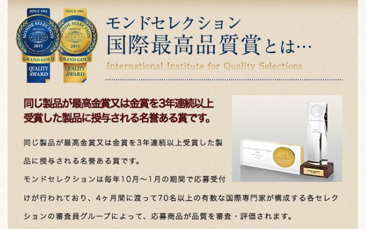 モンドセレクション13年連続金賞受賞!