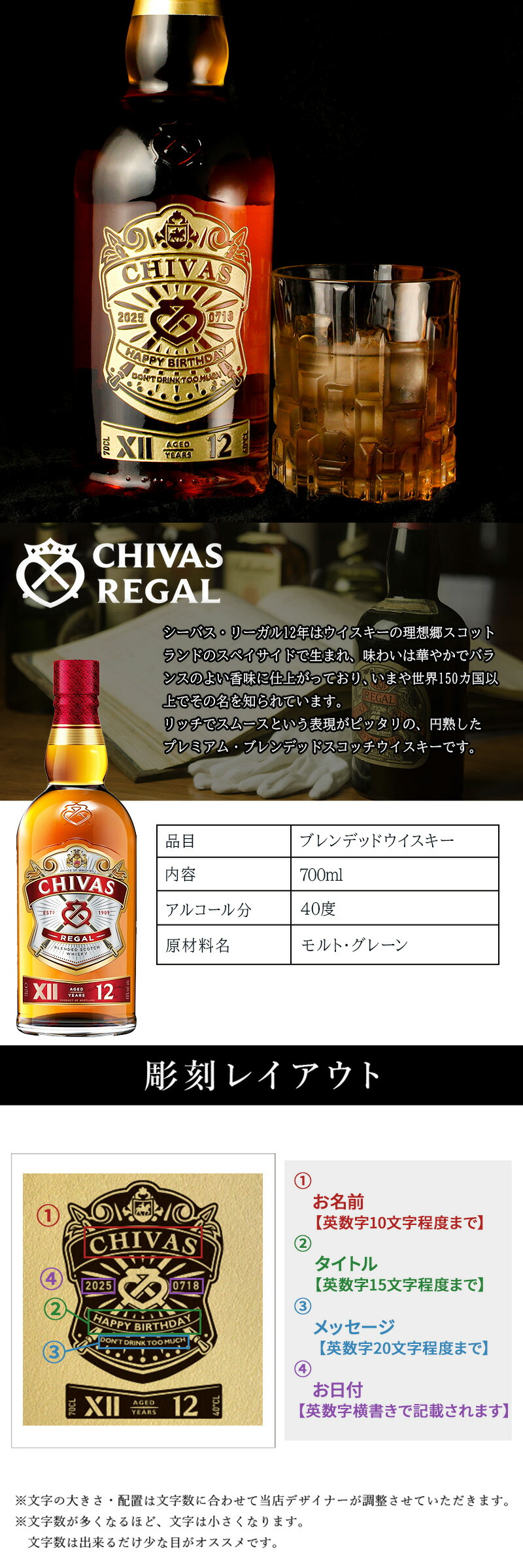 オリジナル名入れ彫刻で、思い出を刻む シーバスリーガル12年