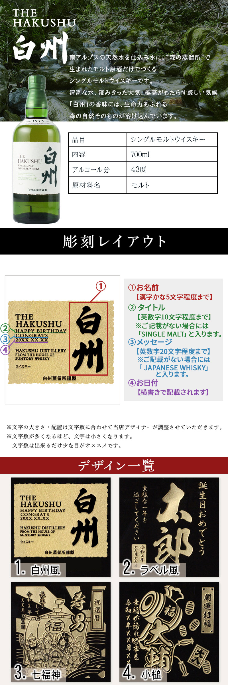 白州のラベルデザインをアレンジした遊び心たっぷりの彫刻デザインもご準備!