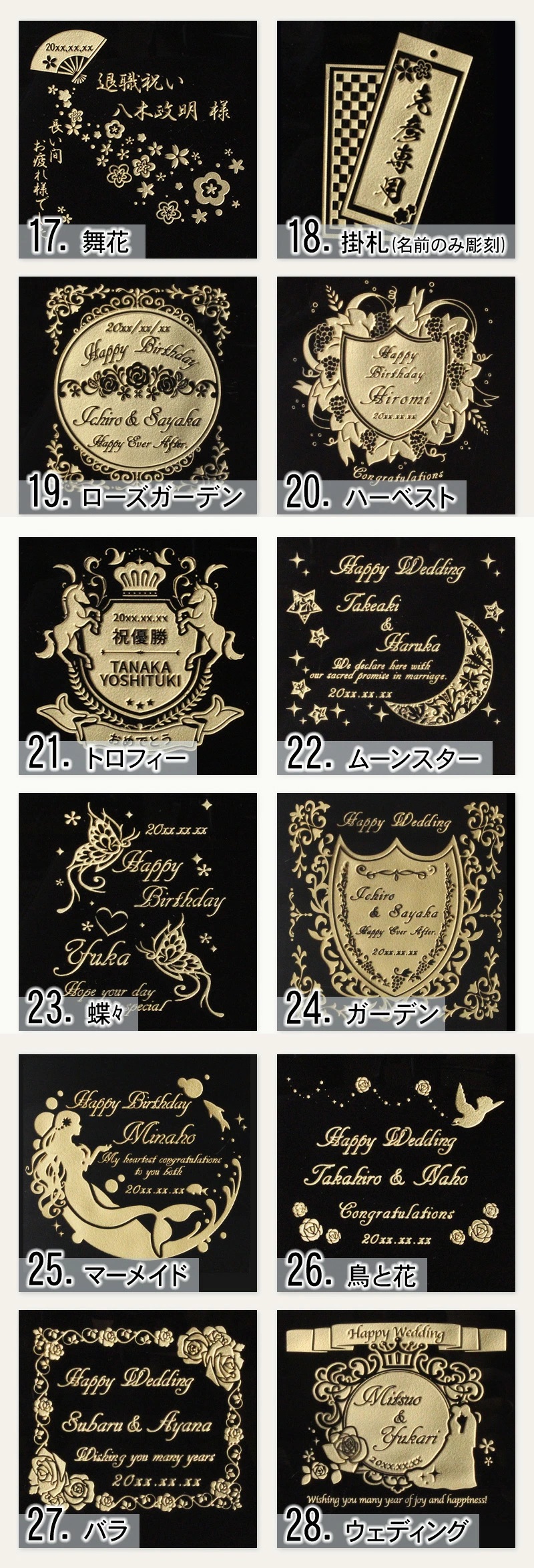 メッセージや日付も彫刻可能でギフトや記念にぴったりな商品です。