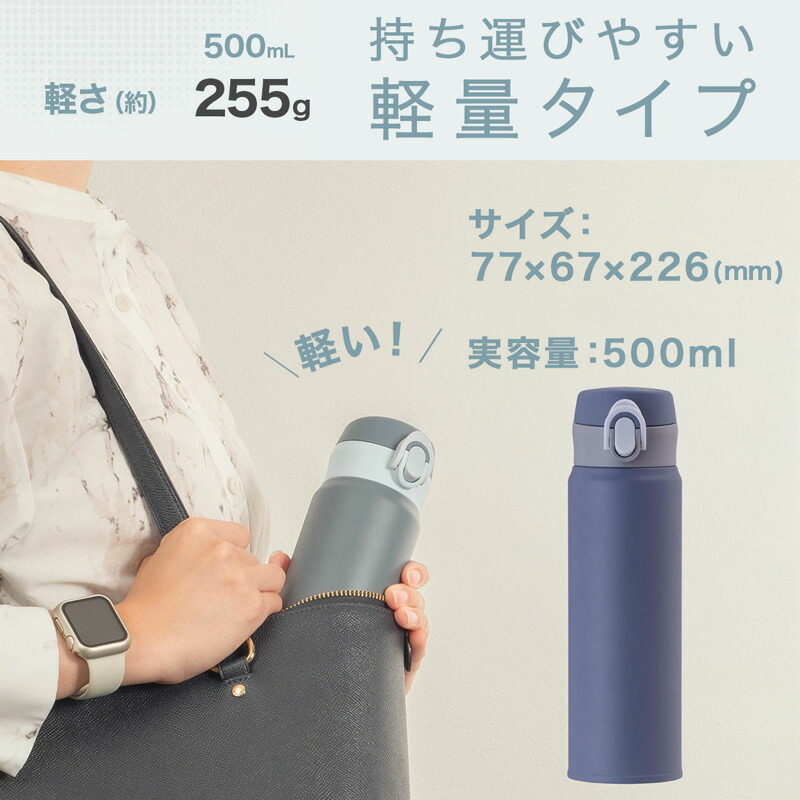 500mlの大容量なのに、超軽量で持ち運びも楽々!