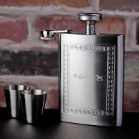 ステンレス製フラスコと漏斗、ショットがセットになったギフトに最適なフラスコセット。ピューターフラスコは予算オーバーだけれど、本格的なフラスコを手に入れたいという方にもオススメです。