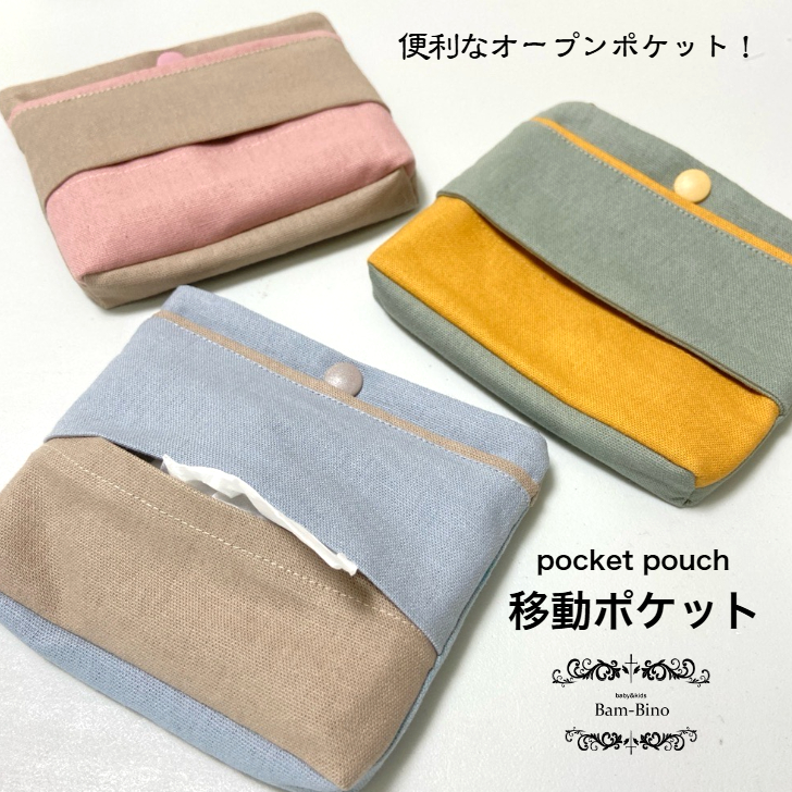 移動ポケット ポケットポーチ 移動 ポケット ポーチ ティッシュケース 外付けポケット くすみカラー ハンカチ入れ 持ち歩き スナップボタン クリップ ストラップ