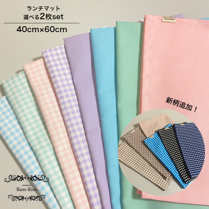 ランチョンマット 子供用 2枚 セット 40cm×60cm 無地 ギンガムチェック ドット ランチクロス 子供 日本製 女の子 小学校 買い替え 給食 洗濯