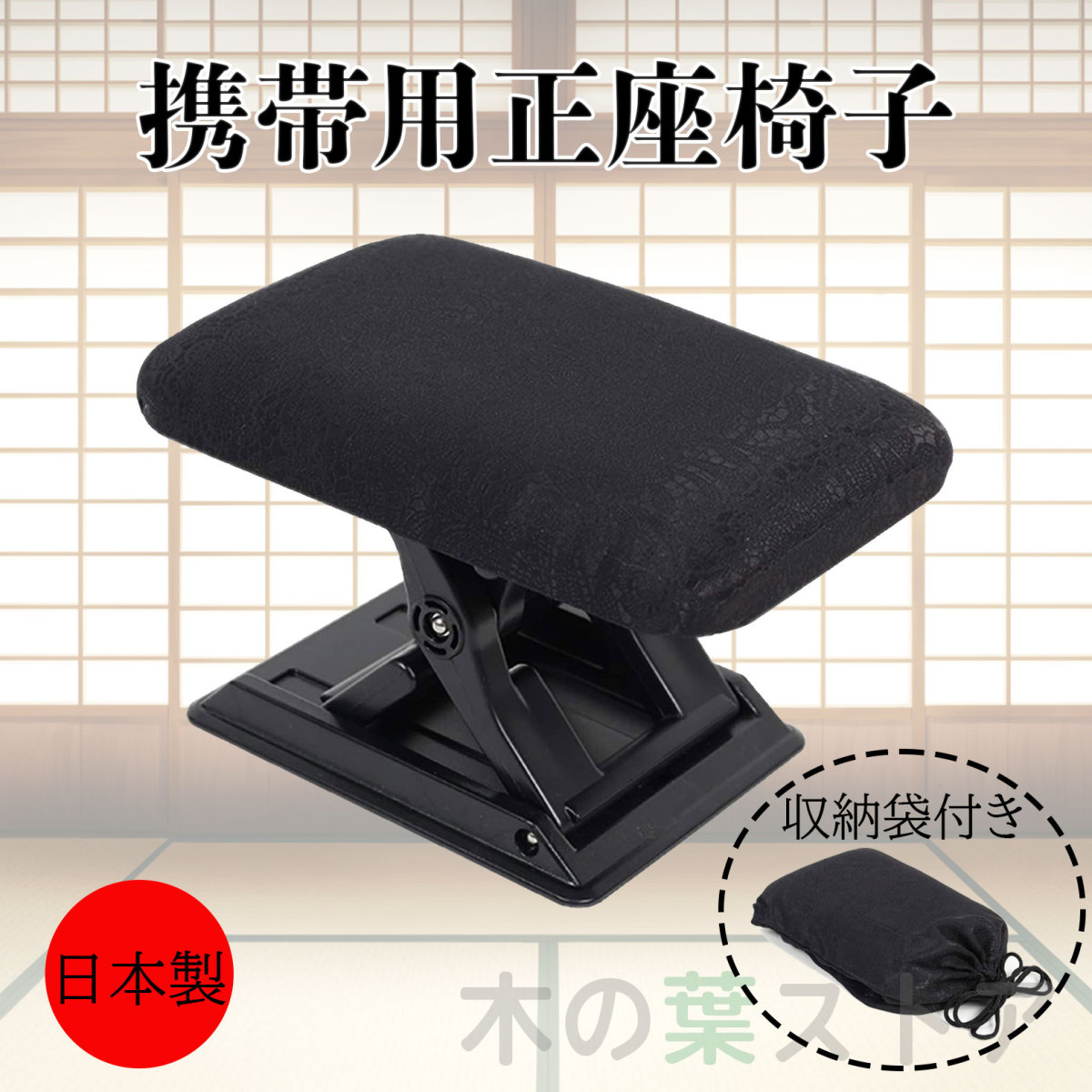 正座椅子 ワンタッチ3段調節 折りたたみ 携帯用 日本製 黒色 おしゃれ 正座椅子 コンパクト 座椅子 正座 お盆 法事 耐荷重150kg ビグモ