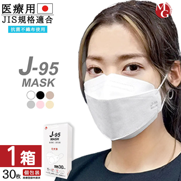 J-95 信頼の日本製 不織布 マスク J95 医療用JIS規格取得済みマスク 3D立体構造 N95マスク同等 4層構造 話しやすい 息がしやすい 小顔効果