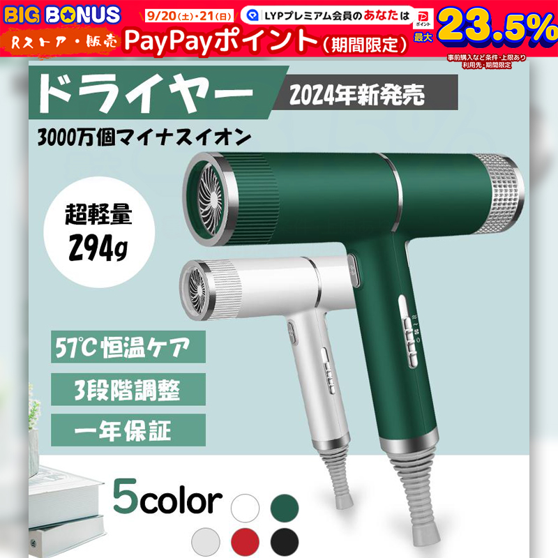 【2024年新発売】ドライヤー 速乾 大風量 軽量 3000万個マイナスイオン 57°C恒温ケア ヘアケア 3段階調整 静音高級 安い 美髪 過熱機能 おすすめ 家電 美容家電