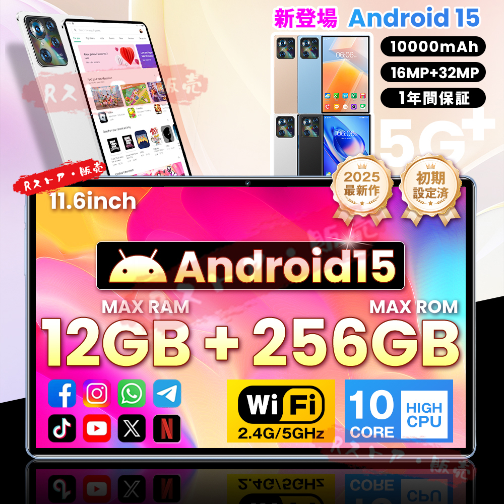 タブレット pc 本体 android15 新品 11インチ 12+256GB おすすめ Wi-Fi 5G モデル GPS Bluetooth 通話対応 大画面 IPS液晶 軽量 ネット授業 simフリー ギフト