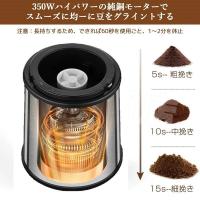 1或2段階自由選択後自動挽く、手で押す操作必要ない、両手解放!コーヒー豆を入れて、お好きな粗さに合わせてお使いください !