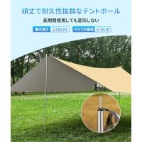 ・キャンプタープは高さ調節なポール付きです:キャンプタープには、高さを17インチから90インチまで調節なポールが2本付属しています。ポールの高さや位置を調整することで、異なる形状の日陰を得ることができます。