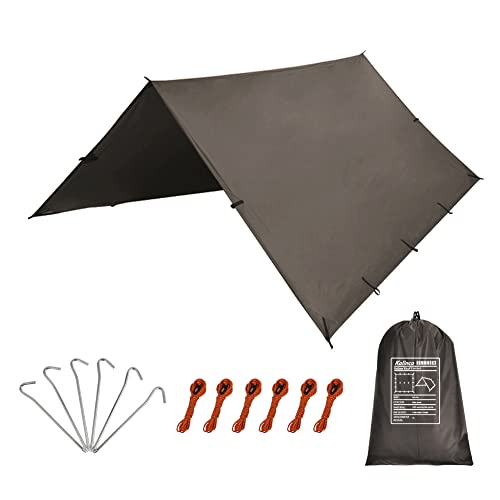 ・様々なシーンで活躍:登山、キャンプ、釣り、旅行、パーティーなどに最適です。タープを広げ、床に敷いてピクニックマットとしても使えます。釘やロープを使って日よけや雨よけにすることもできる。