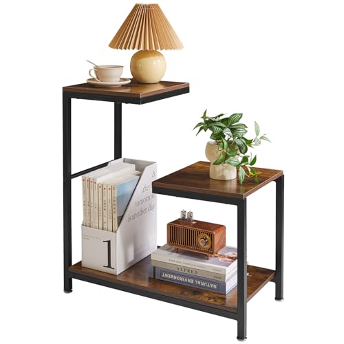 ・小スペースに適している:このコンパクトなサイドテーブルは、3段のオープンシェルフを特徴としており、本、雑誌、小物などを十分に収納でき、狭いスペースに最適です