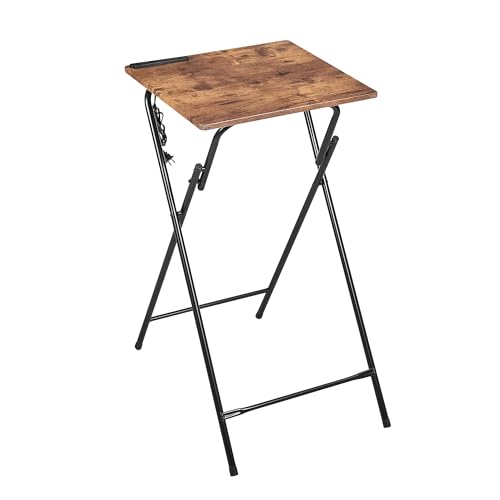VECELO テーブル ミニ 折りたたみ コンセント付き サイドテーブル 幅50×奥行48×高さ90cm 簡易机 折り畳みテーブル 事務机 多機