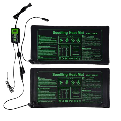 Bunmery 育苗マット 2枚セット コントローラー付き 温度調整 植物ヒーターマット 取り外し 育苗器 植物育成用パッド
