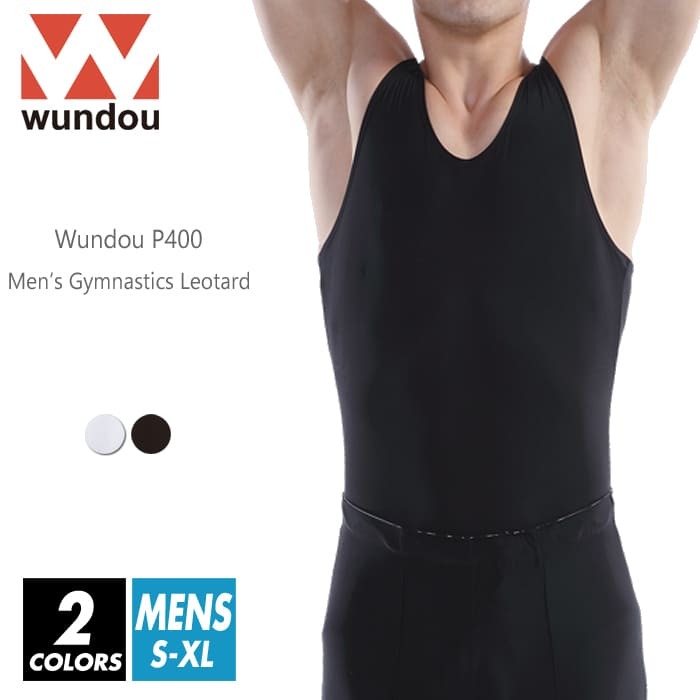wundou(ウンドウ) 体操 バレエ レオタード 無地 メンズ p400 s-xl 2色 ホワイト ブラック 吸汗速乾 ノースリーブ 新体操 部活 クラブ
